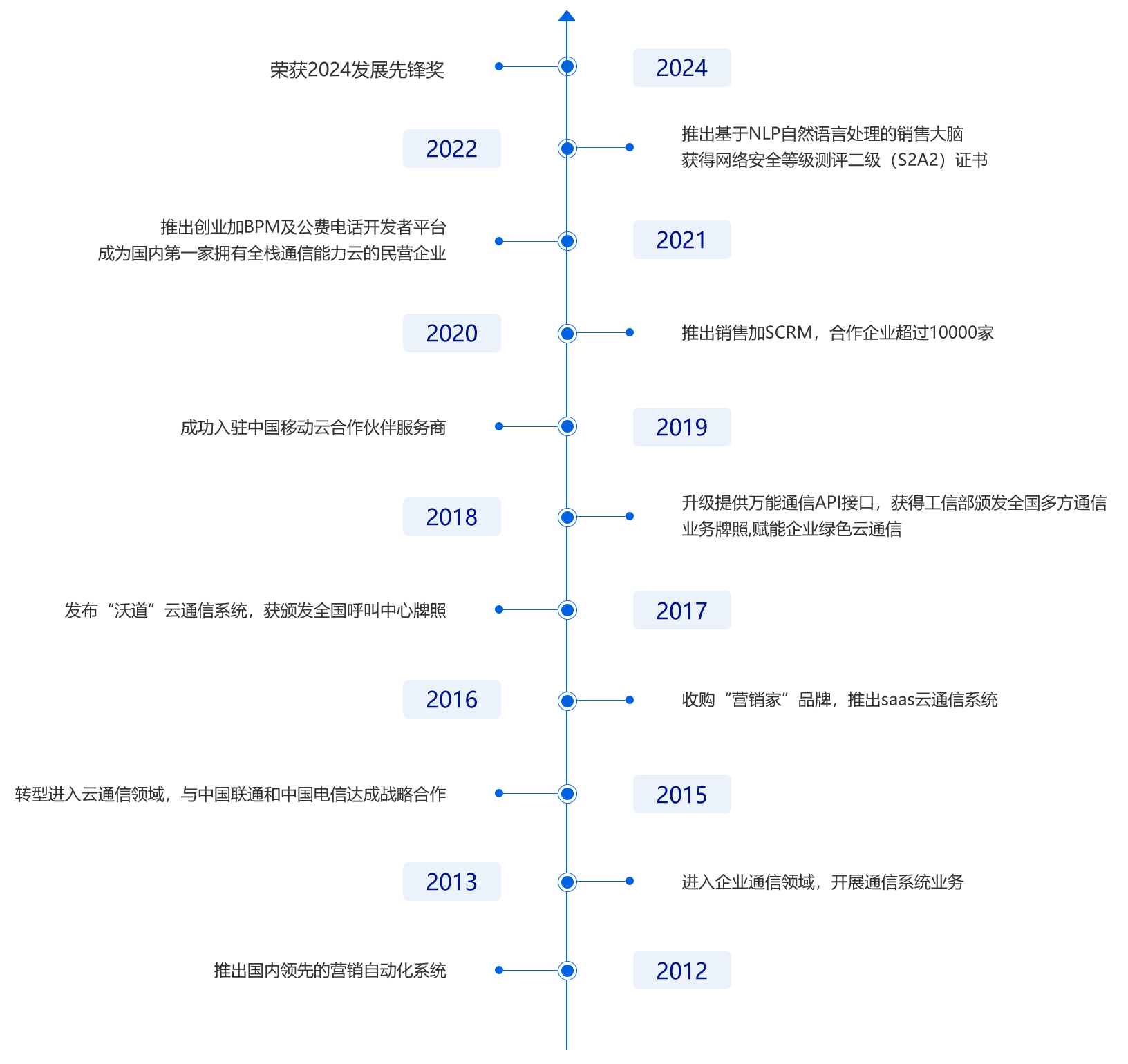 深耕行业多年,公司已成功发布“销售加SCRM”、“创业加BPM”、“公费电话开发者平台”等智能云通信产品。近年来,公司顺利与多所国内高校达成战略合作,