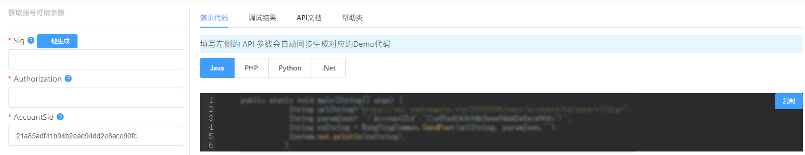 此时 Auth=Base64(账户授权 ID:账号授权 Token:时间戳),Sig = MD5(账户授权 ID:账号授权 Token:时间戳)。