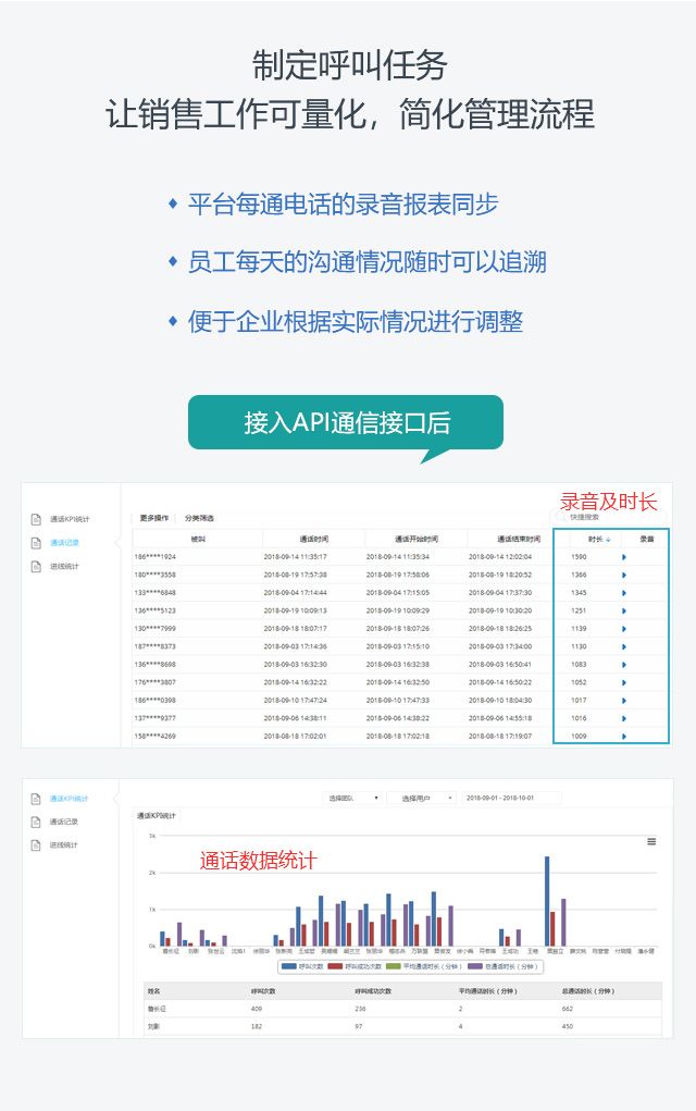 融营通信通过打造赋能API接口,通过加密客户的联系方式来保护企业客户数据隐私,对数据本身增强了保护,数据传输、存储及处理的各个阶段对数据进行加密,对信息进行处理,实现信息隐蔽,保护用户数据安全。避免员工离职后给企业带来不可估量的损失。