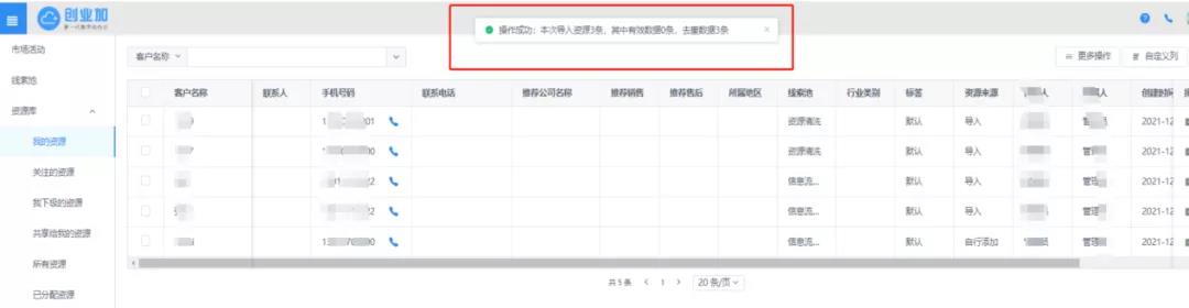 根据实操反馈情况来看,融营通信技术团队发现不同业务员在完成大批量数据导入时,时常遇到数据雷同的情况,为避免业务员重复联系同一客户, 本次更新已新增自动去重功能,资源清洗导入数据时,系统将自动核查所有数据,并对重复数据进行剔除。