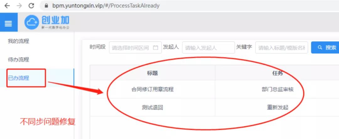 技术团队听取了大家的意见,在新版本的创业加BPM中,【合同修订】及【法务介入】流程的标题详情已支持全部显示,使用者不但可以直观预览标题的全部内容,还可在关键词检索栏中输入标题中的内容字段,精准搜查所需查找的流程事项。