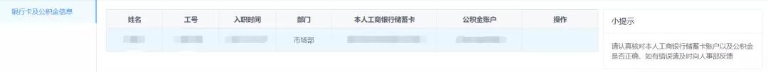 【人事档案管理】入口目前已开放个人查看权限,新增银行卡卡号与公积金账户信息,方便使用者随时核查,发现问题也可及时向相关部门沟通反应。